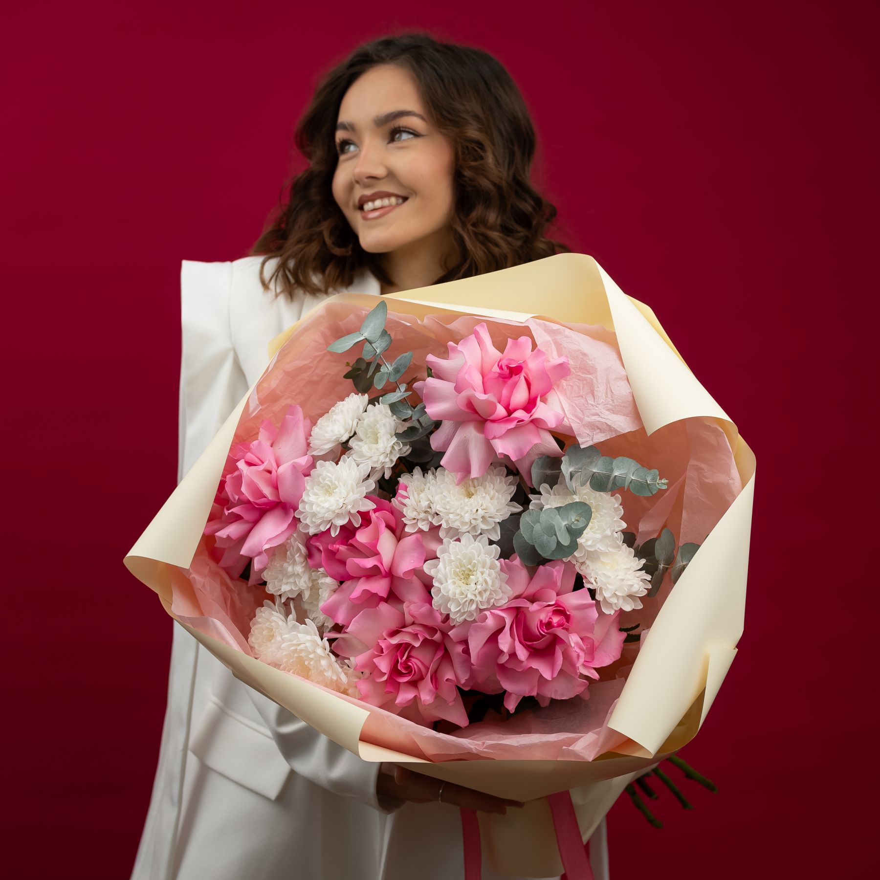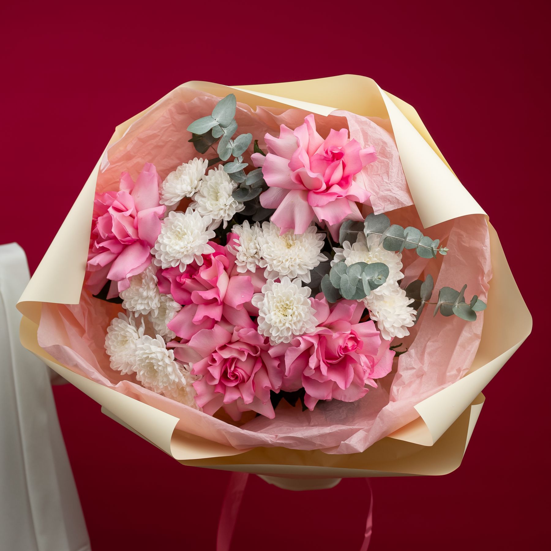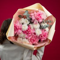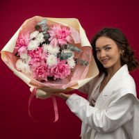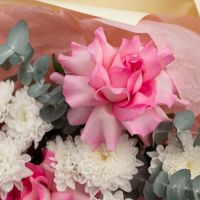 Состав: кустовая хризантема Алтай - 3 шт французская роза розовая - 5 шт упаковка - 1 шт