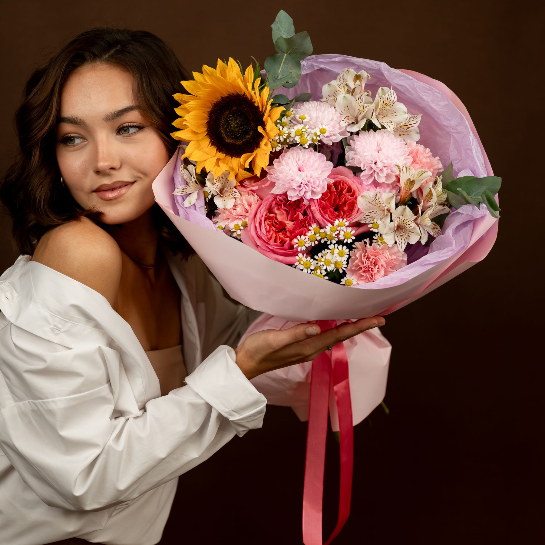 Забрать букет вы можете сами в любое удобное для вас время с 9:00-20:00 по адресу ул.Братская 24А